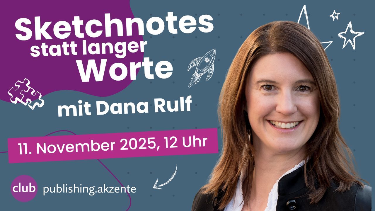 Die publishing.akzente sind das Webinar-Format des publishing.club. Sie finden jeweils online in Zoom statt und werden aufgezeichnet.